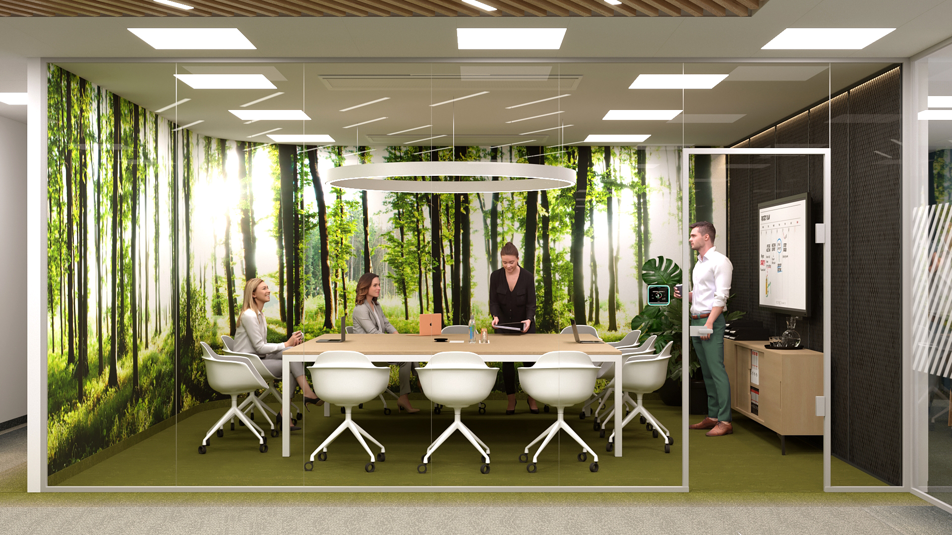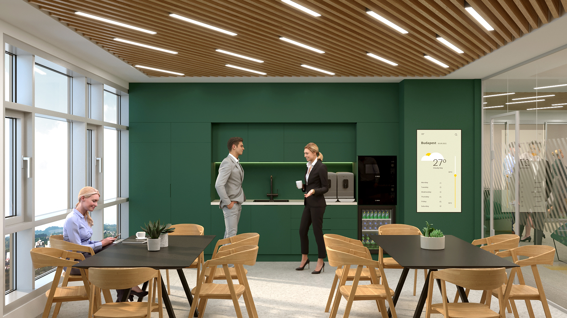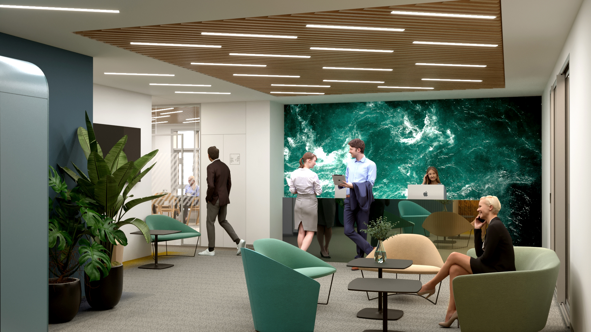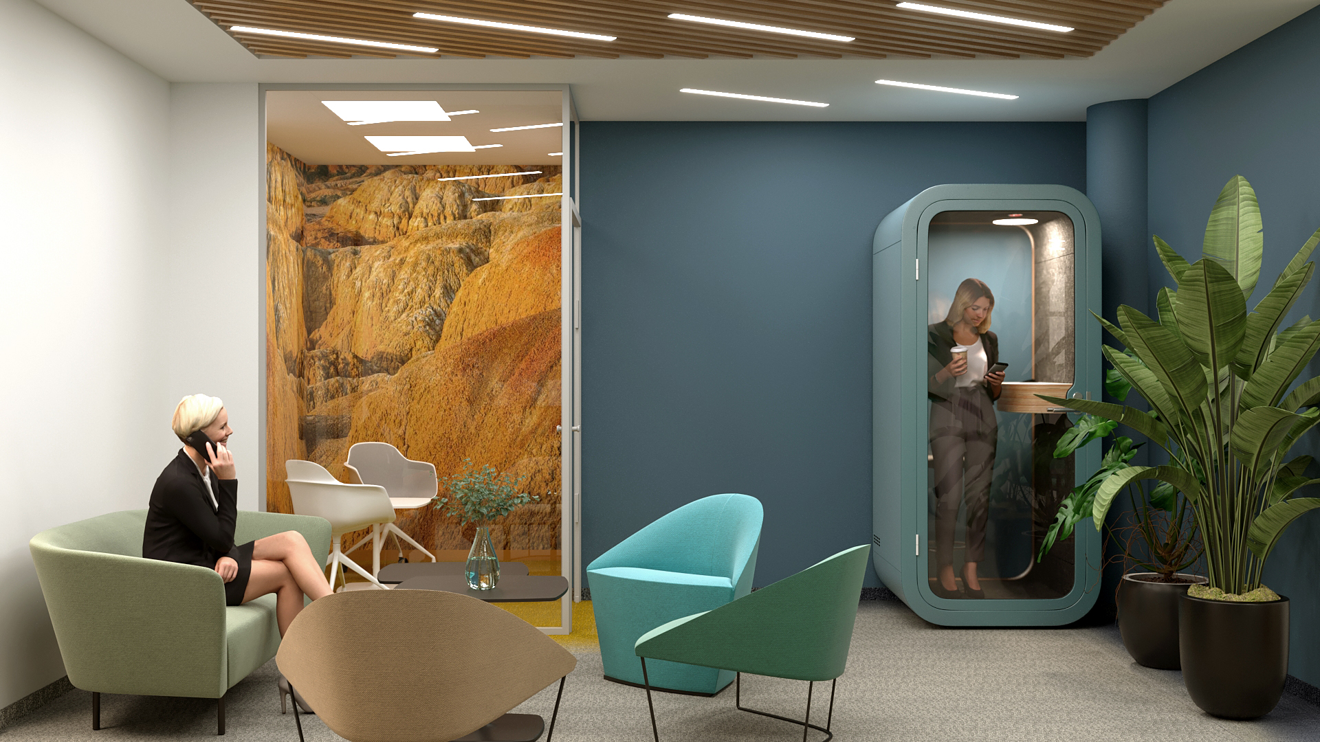 Tower International új irodájának New Way of Working szerinti kialakítása mellett nagy hangsúlyt fektettünk a belsőépítészeti design és a funkció kapcsolatára. A színek pszichére gyakorolt hatásai alapján párosítottuk a természeti környezetet az irodatér funkcionális tereihez. A természeti környezet színei absztrahálva megjelennek a tér felületein, textúráin, a bútorok és a kiegészítők formáin.